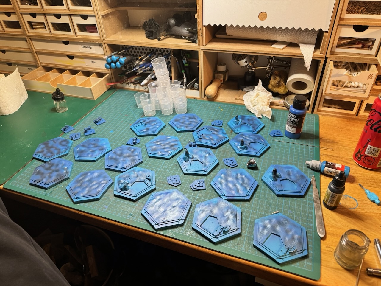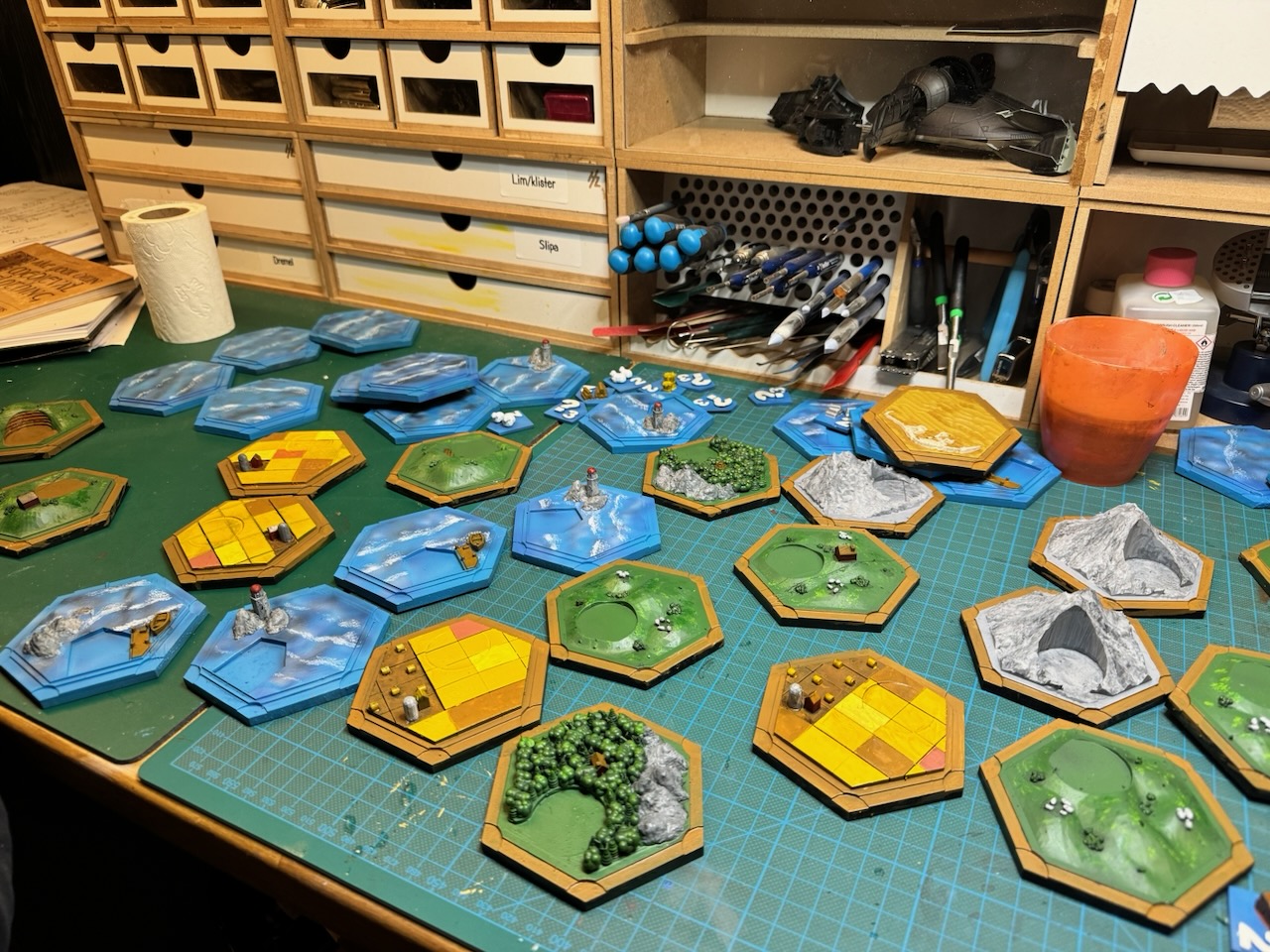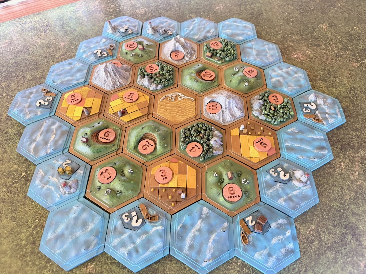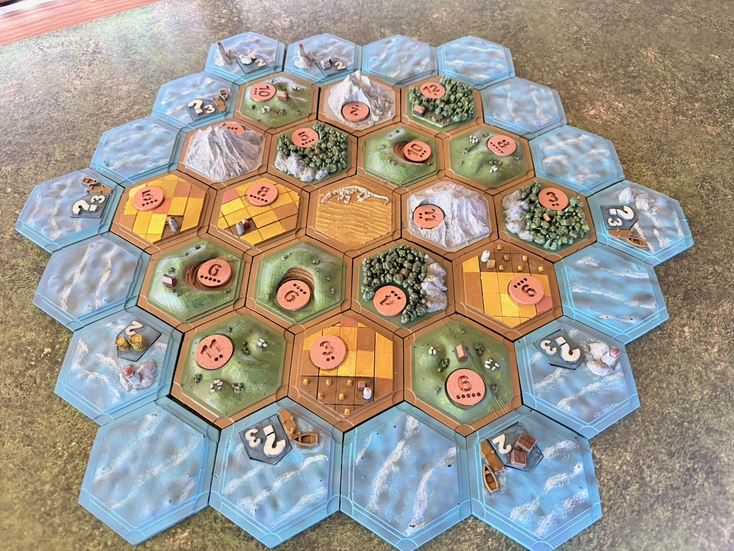 Fick feeling och 3D-printade 3D-versioner av Settler och Catan-spelet som jag sedan målade, tyckte det blev riktigt bra!