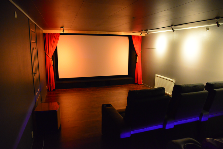 För det första så är belysningen på plats. Jag hittade GU10-spotlights på bauhaus som var rätt så små och diskreta, så sex sådana sitter nu i taket. Fyra stycken lyser upp högerväggen och två lyser upp bioduken.
