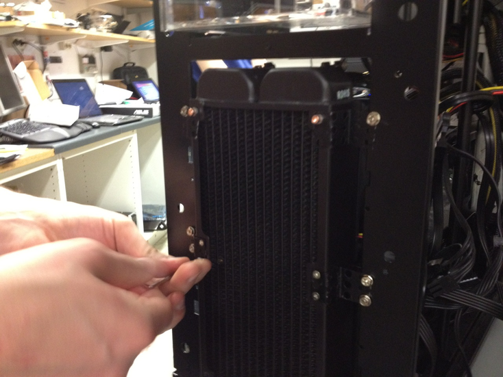 Detta är bakre radiatorn, men en fläkt bakom som suger lufte genom radiatorn och ut ur lådan. Om det skulle vara otillräckligt så kan man sätta en 120mm fläkt på insidan av radiatorn med.