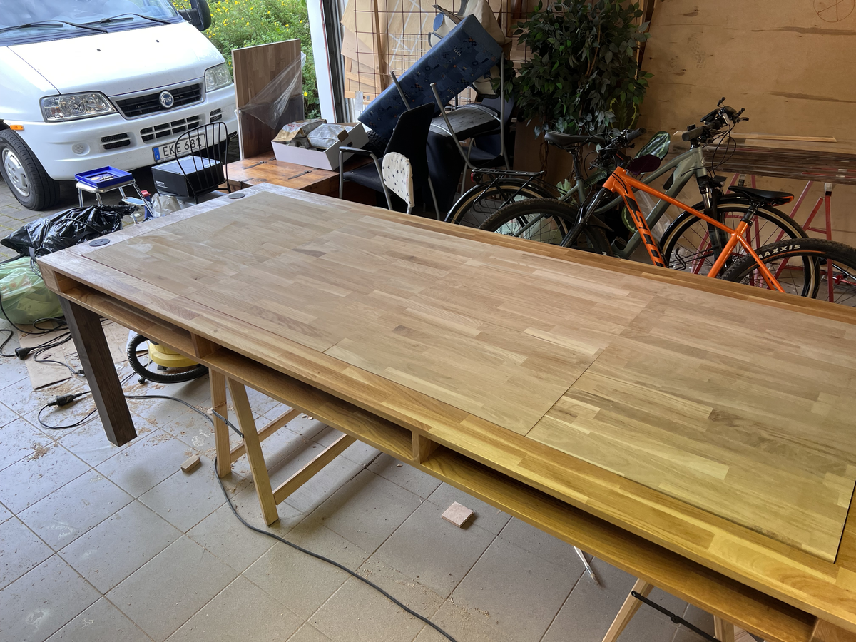 Första behandlingen av Danish Oil. Sammanlagt tre lager.